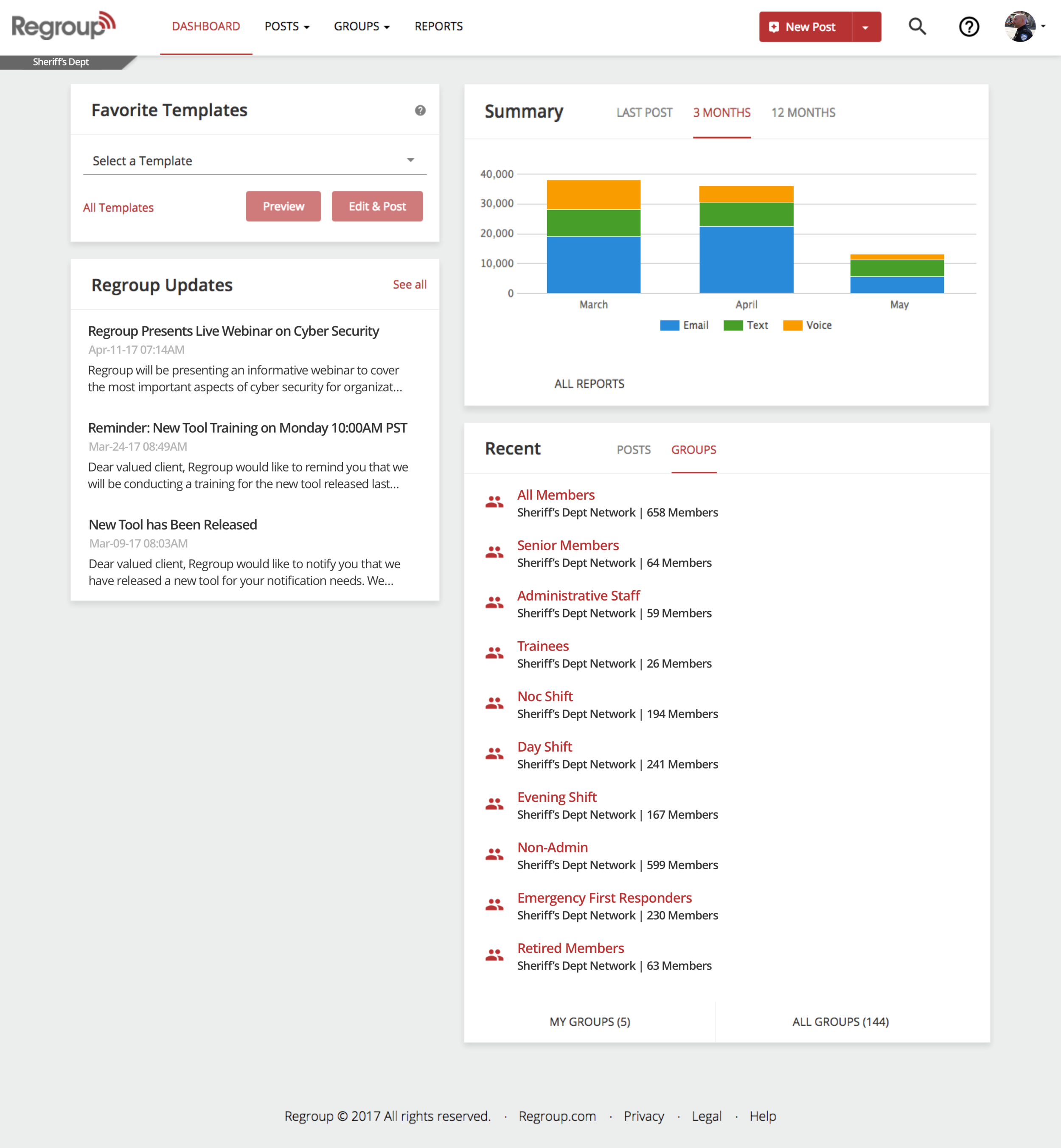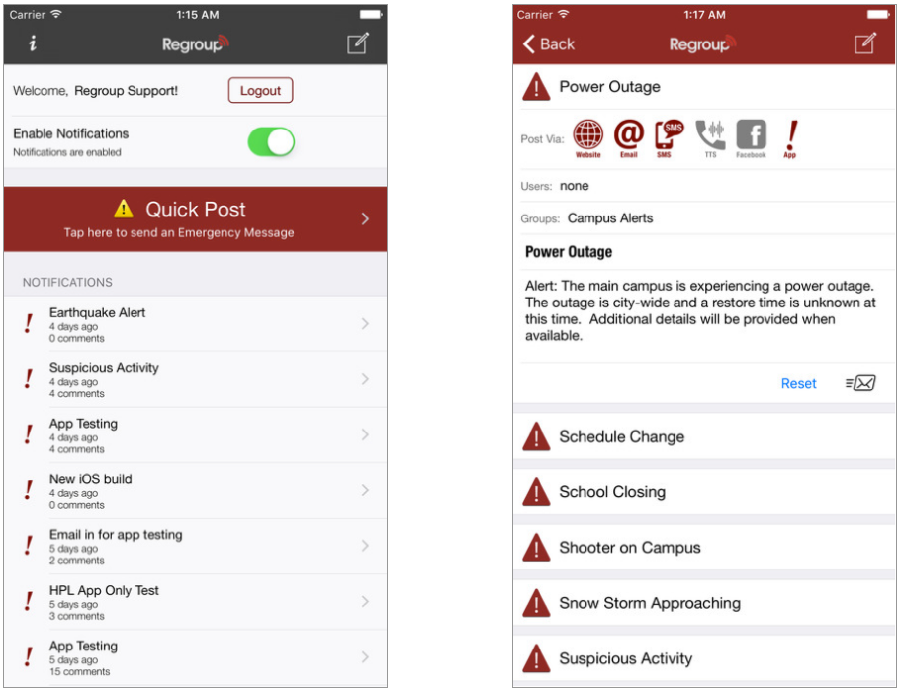 Regroup's primary function is a messaging service in the event of an emergency. Emergencies are stressful situations and the last thing an administrator wants to do is have to type out an articulate message. Templates and Quick Posts are a solution to prepare in advance of these emergency situations, reducing the workload on an already stressful situation.