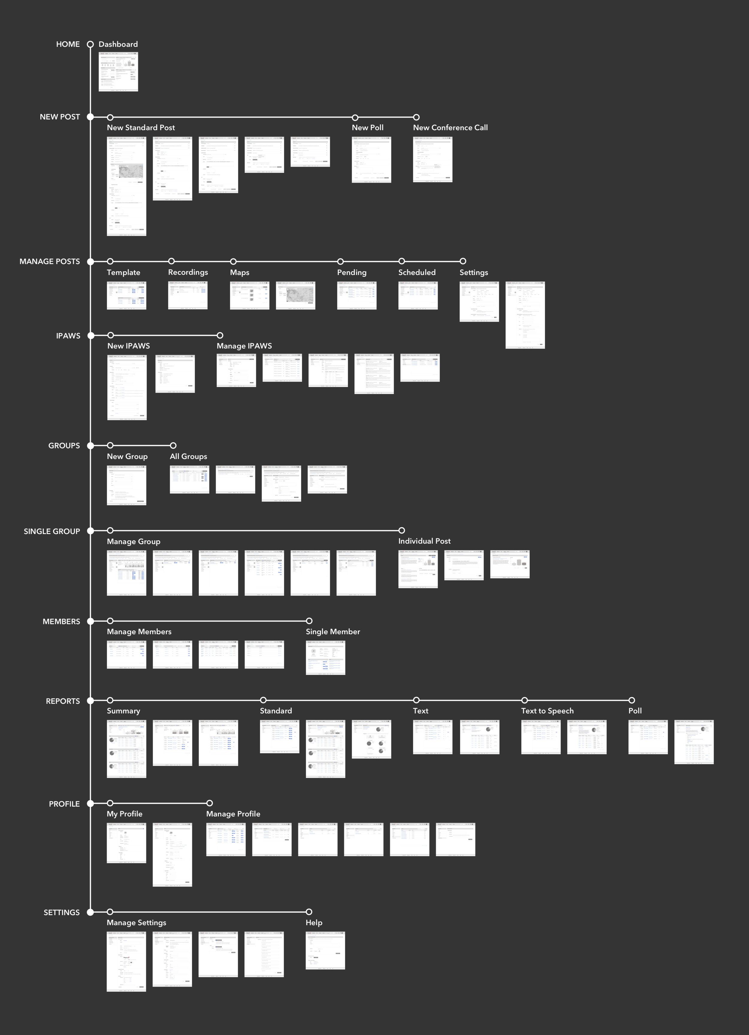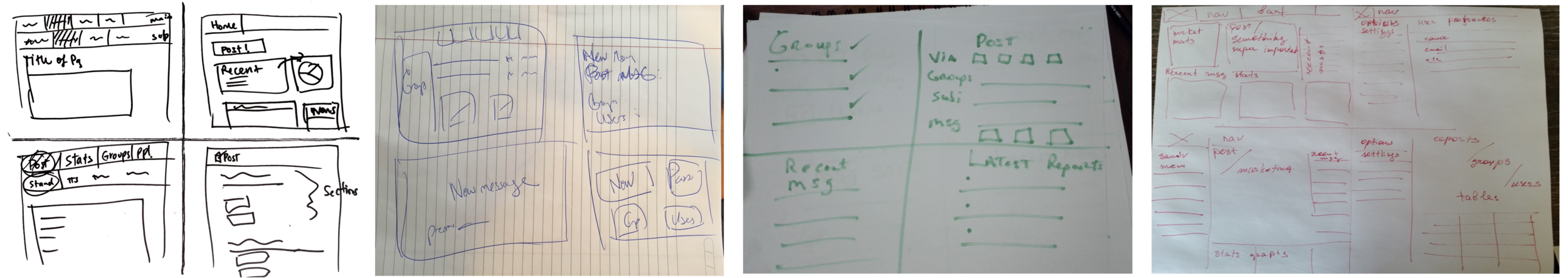 CHALLENGE – The enterprise application was visually outdated and non-responsive and the application's content and navigation needed more organization. The initial scope started on the dashboard/home, send a post, and group management pages, but soon extended to encompass the whole application. Major focus areas included designing a more current and cohesive interface design, and addressing information architecture and content organization to increase usability.